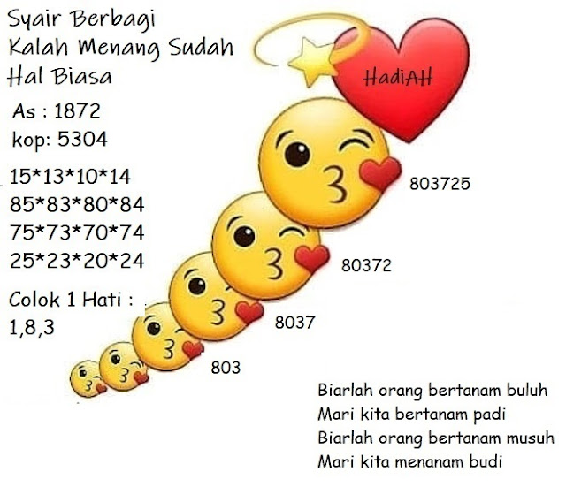 Permainan togel online ini sangatlah membutuhkan kesadaran diri di dalam membaca dan memprediksi suatu angka. Maka dari itu kunjungi selalu kode syair hk hari ini dimana dalam forum syairhk hari ini yang kami terbitkan ini akan jauh lebih memudahkan anda dalam menebak angka keluaran di periode selanjutnya. Kami juga sudah mempersiapkan Prediksi Syair Hongkong Akurat 01 Januari 2021 untuk anda member tercinta kami.