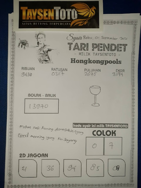 Tetaplah pergunakan perasaan anda sendiri untuk memahami semua makna dari Syair HK 01 September 2021. Jangan terlalu terburu – buru ya saat membaca semua makna dari syair hk kami ini. Pahami dan cerna secara pelan dan pilih lah salah satu syair yang paling terfavorit oleh para penikmat pecinta judi togel online. Oh ya tahukan kalian pada dasarnya ada beberapa syair yang paling banyak dicari oleh jutaan para pemain judi togel online seperti syair kampleng, syair pandawa hk, syair mbah semar, syair hk naga mas.