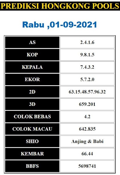 Permainan togel online ini sangatlah membutuhkan kesadaran diri di dalam membaca dan memprediksi suatu angka. Maka dari itu kunjungi selalu kode syair hk hari ini dimana dalam forum syairhk hari ini yang kami terbitkan ini akan jauh lebih memudahkan anda dalam menebak angka keluaran di periode selanjutnya. Kami juga sudah mempersiapkan Prediksi Syair Hongkong Akurat 01 September 2021 untuk anda member tercinta kami.