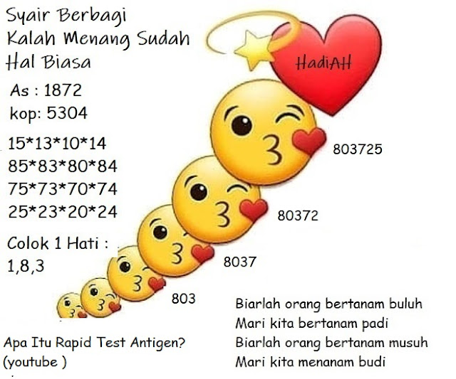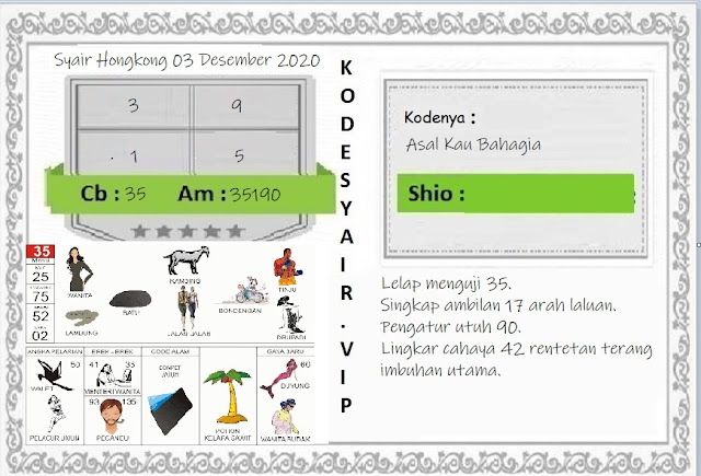 Permainan togel online ini sangatlah membutuhkan kesadaran diri di dalam membaca dan memprediksi suatu angka. Maka dari itu kunjungi selalu kode syair hk hari ini dimana dalam forum syairhk hari ini yang kami terbitkan ini akan jauh lebih memudahkan anda dalam menebak angka keluaran di periode selanjutnya. Kami juga sudah mempersiapkan Prediksi Syair Hongkong Akurat 02 Januari 2021 untuk anda member tercinta kami.