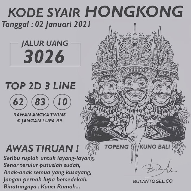 Tetaplah pergunakan perasaan anda sendiri untuk memahami semua makna dari Syair HK 02 Januari 2021. Jangan terlalu terburu – buru ya saat membaca semua makna dari syair hk kami ini. Pahami dan cerna secara pelan dan pilih lah salah satu syair yang paling terfavorit oleh para penikmat pecinta judi togel online. Oh ya tahukan kalian pada dasarnya ada beberapa syair yang paling banyak dicari oleh jutaan para pemain judi togel online seperti syair kampleng, syair pandawa hk, syair mbah semar, syair hk naga mas.