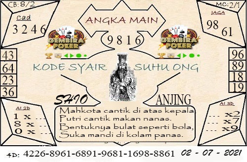 Tetaplah pergunakan perasaan anda sendiri untuk memahami semua makna dari Syair HK 02 Juli 2021. Jangan terlalu terburu – buru ya saat membaca semua makna dari syair hk kami ini. Pahami dan cerna secara pelan dan pilih lah salah satu syair yang paling terfavorit oleh para penikmat pecinta judi togel online. Oh ya tahukan kalian pada dasarnya ada beberapa syair yang paling banyak dicari oleh jutaan para pemain judi togel online seperti syair kampleng, syair pandawa hk, syair mbah semar, syair hk naga mas.