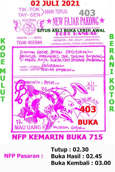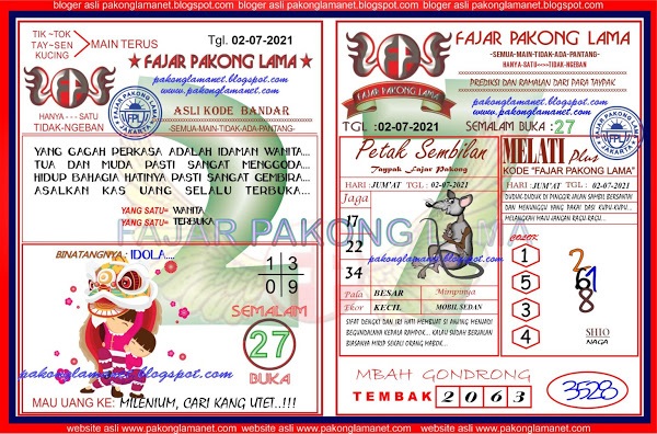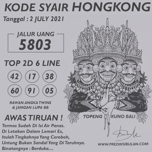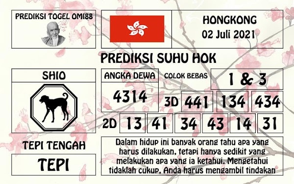 Permainan togel online ini sangatlah membutuhkan kesadaran diri di dalam membaca dan memprediksi suatu angka. Maka dari itu kunjungi selalu kode syair hk hari ini dimana dalam forum syairhk hari ini yang kami terbitkan ini akan jauh lebih memudahkan anda dalam menebak angka keluaran di periode selanjutnya. Kami juga sudah mempersiapkan Prediksi Syair Hongkong Akurat 02 Juli 2021 untuk anda member tercinta kami.