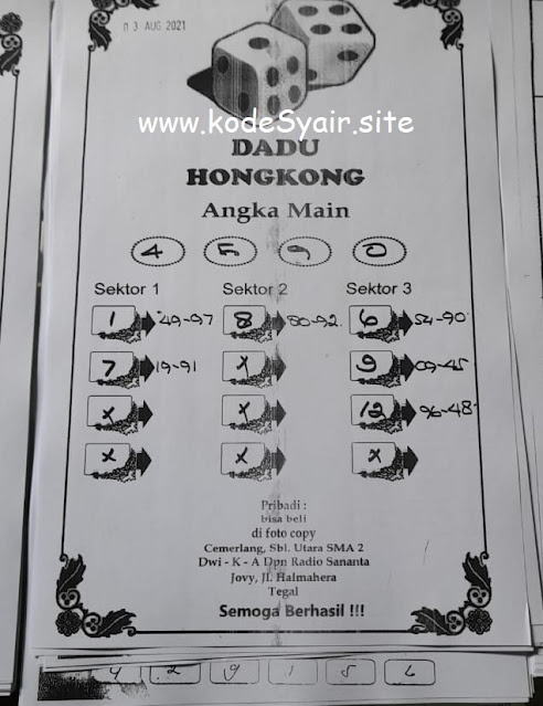 Syair Hongkong 03 Agustus 2021