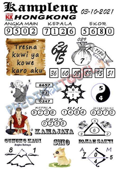 Permainan togel online ini sangatlah membutuhkan kesadaran diri di dalam membaca dan memprediksi suatu angka. Maka dari itu kunjungi selalu kode syair hk hari ini dimana dalam forum syairhk hari ini yang kami terbitkan ini akan jauh lebih memudahkan anda dalam menebak angka keluaran di periode selanjutnya. Kami juga sudah mempersiapkan Prediksi Syair Hongkong Akurat 03 Oktober 2021 untuk anda member tercinta kami.
