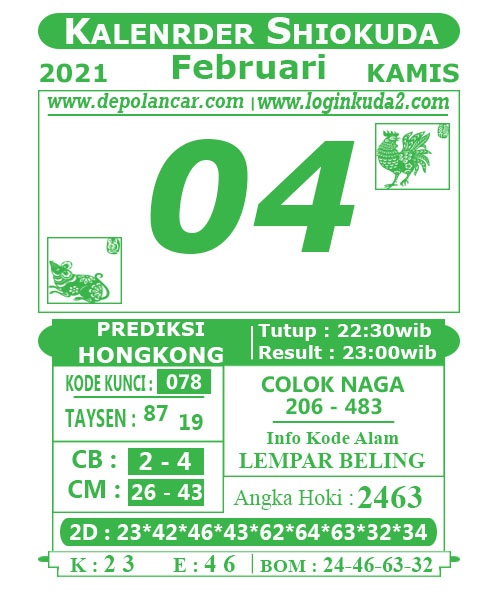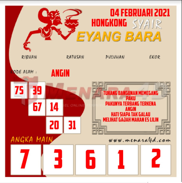 Permainan togel online ini sangatlah membutuhkan kesadaran diri di dalam membaca dan memprediksi suatu angka. Maka dari itu kunjungi selalu kode syair hk hari ini dimana dalam forum syairhk hari ini yang kami terbitkan ini akan jauh lebih memudahkan anda dalam menebak angka keluaran di periode selanjutnya. Kami juga sudah mempersiapkan Prediksi Syair Hongkong Akurat 04 Februari 2021 untuk anda member tercinta kami.