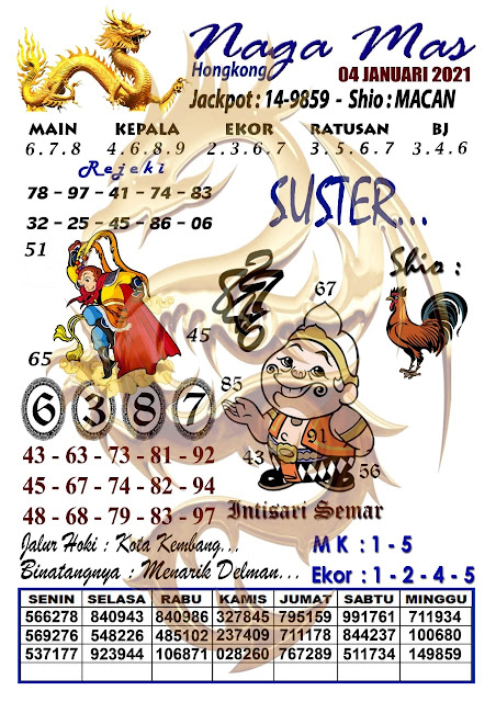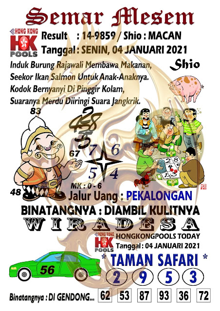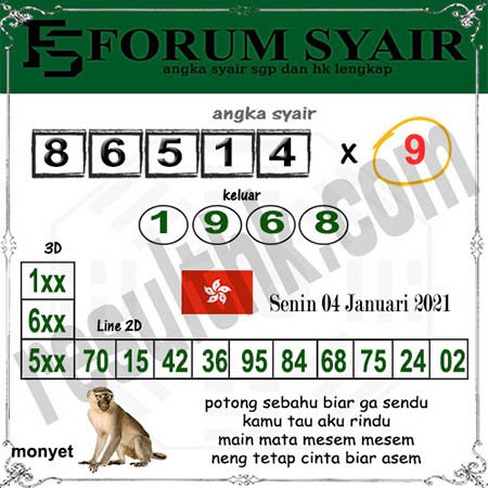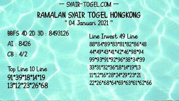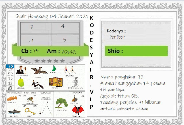 Permainan togel online ini sangatlah membutuhkan kesadaran diri di dalam membaca dan memprediksi suatu angka. Maka dari itu kunjungi selalu kode syair hk hari ini dimana dalam forum syairhk hari ini yang kami terbitkan ini akan jauh lebih memudahkan anda dalam menebak angka keluaran di periode selanjutnya. Kami juga sudah mempersiapkan Prediksi Syair Hongkong Akurat 04 Januari 2021 untuk anda member tercinta kami.