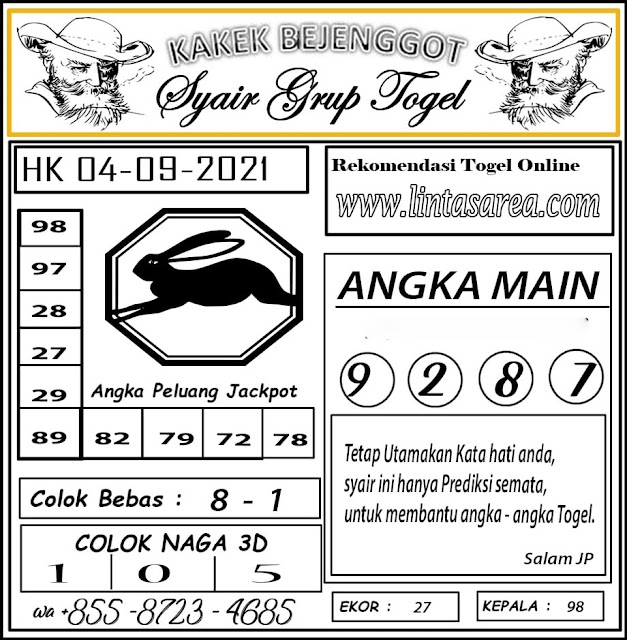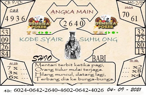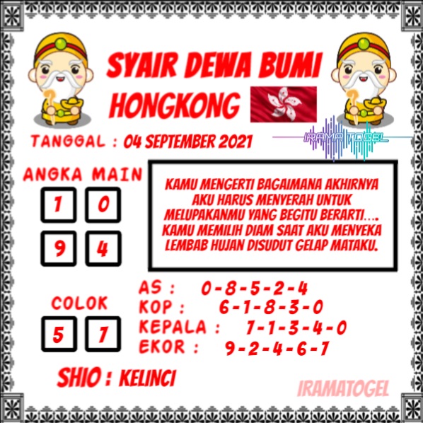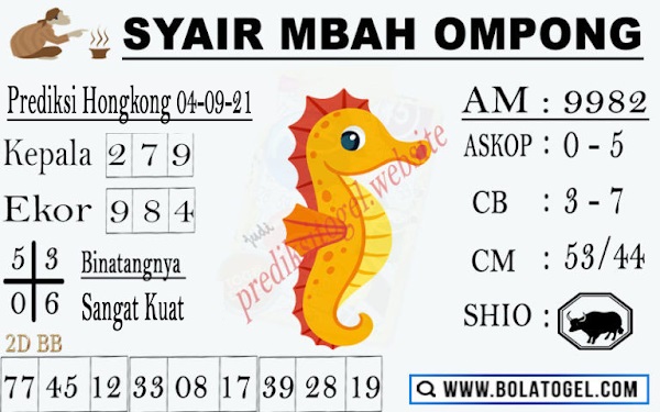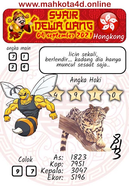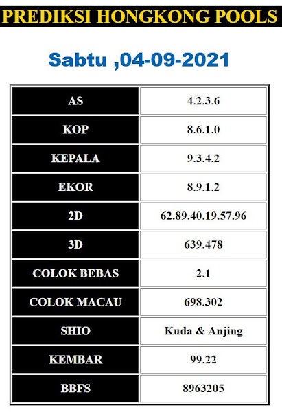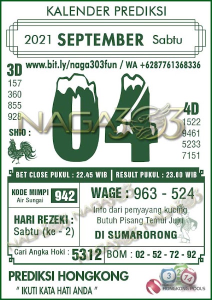 Permainan togel online ini sangatlah membutuhkan kesadaran diri di dalam membaca dan memprediksi suatu angka. Maka dari itu kunjungi selalu kode syair hk hari ini dimana dalam forum syairhk hari ini yang kami terbitkan ini akan jauh lebih memudahkan anda dalam menebak angka keluaran di periode selanjutnya. Kami juga sudah mempersiapkan Prediksi Syair Hongkong Akurat 04 September 2021 untuk anda member tercinta kami.