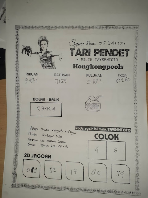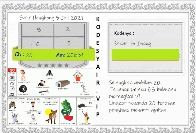 Permainan togel online ini sangatlah membutuhkan kesadaran diri di dalam membaca dan memprediksi suatu angka. Maka dari itu kunjungi selalu kode syair hk hari ini dimana dalam forum syairhk hari ini yang kami terbitkan ini akan jauh lebih memudahkan anda dalam menebak angka keluaran di periode selanjutnya. Kami juga sudah mempersiapkan Prediksi Syair Hongkong Akurat 05 Juli 2021 untuk anda member tercinta kami.