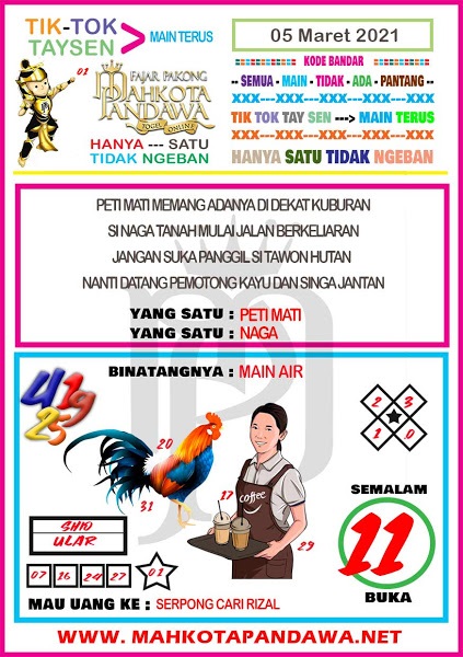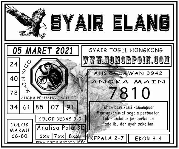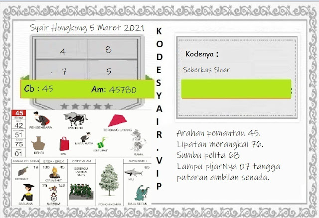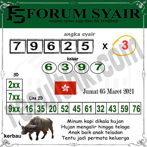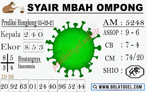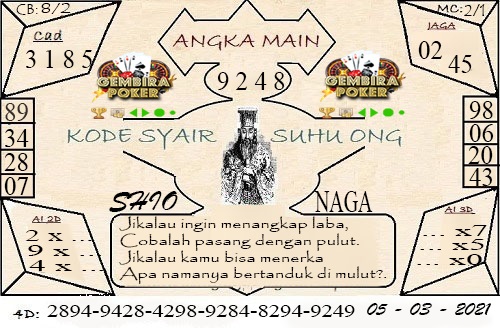 Permainan togel online ini sangatlah membutuhkan kesadaran diri di dalam membaca dan memprediksi suatu angka. Maka dari itu kunjungi selalu kode syair hk hari ini dimana dalam forum syairhk hari ini yang kami terbitkan ini akan jauh lebih memudahkan anda dalam menebak angka keluaran di periode selanjutnya. Kami juga sudah mempersiapkan Prediksi Syair Hongkong Akurat 05 Maret 2021 untuk anda member tercinta kami.