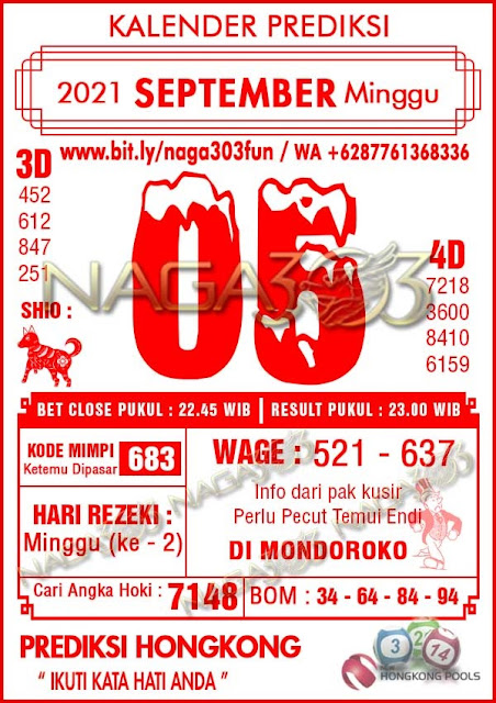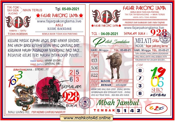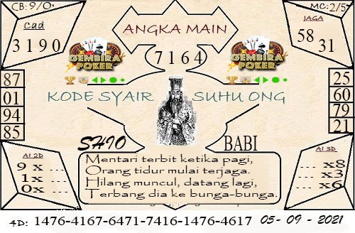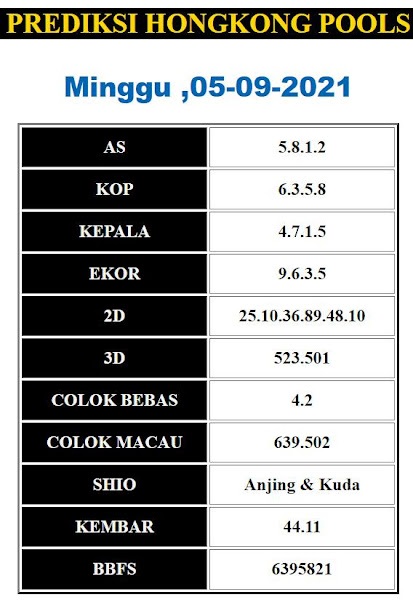 Permainan togel online ini sangatlah membutuhkan kesadaran diri di dalam membaca dan memprediksi suatu angka. Maka dari itu kunjungi selalu kode syair hk hari ini dimana dalam forum syairhk hari ini yang kami terbitkan ini akan jauh lebih memudahkan anda dalam menebak angka keluaran di periode selanjutnya. Kami juga sudah mempersiapkan Prediksi Syair Hongkong Akurat 05 September 2021 untuk anda member tercinta kami.