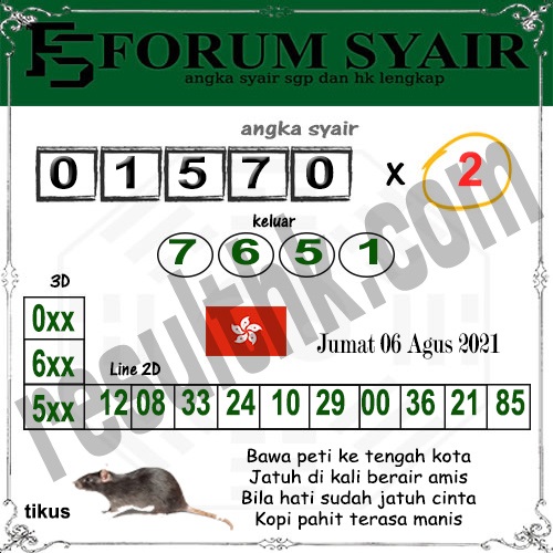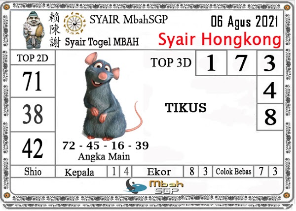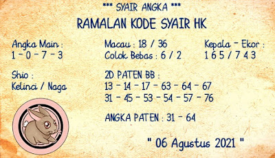 Permainan togel online ini sangatlah membutuhkan kesadaran diri di dalam membaca dan memprediksi suatu angka. Maka dari itu kunjungi selalu kode syair hk hari ini dimana dalam forum syairhk hari ini yang kami terbitkan ini akan jauh lebih memudahkan anda dalam menebak angka keluaran di periode selanjutnya. Kami juga sudah mempersiapkan Prediksi Syair Hongkong Akurat 06 Agustus 2021 untuk anda member tercinta kami.