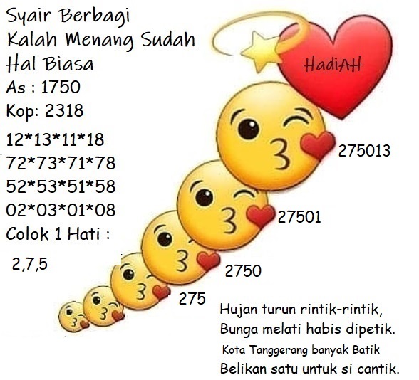 Tetaplah pergunakan perasaan anda sendiri untuk memahami semua makna dari Syair HK 06 Agustus 2021. Jangan terlalu terburu – buru ya saat membaca semua makna dari syair hk kami ini. Pahami dan cerna secara pelan dan pilih lah salah satu syair yang paling terfavorit oleh para penikmat pecinta judi togel online. Oh ya tahukan kalian pada dasarnya ada beberapa syair yang paling banyak dicari oleh jutaan para pemain judi togel online seperti syair kampleng, syair pandawa hk, syair mbah semar, syair hk naga mas.