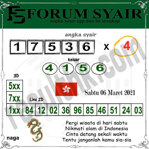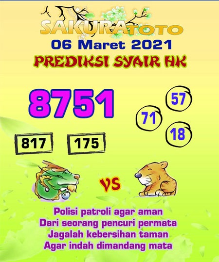 Permainan togel online ini sangatlah membutuhkan kesadaran diri di dalam membaca dan memprediksi suatu angka. Maka dari itu kunjungi selalu kode syair hk hari ini dimana dalam forum syairhk hari ini yang kami terbitkan ini akan jauh lebih memudahkan anda dalam menebak angka keluaran di periode selanjutnya. Kami juga sudah mempersiapkan Prediksi Syair Hongkong Akurat 06 Maret 2021 untuk anda member tercinta kami.