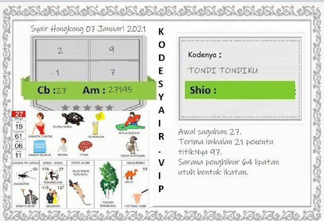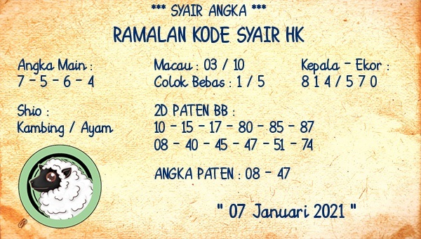 Permainan togel online ini sangatlah membutuhkan kesadaran diri di dalam membaca dan memprediksi suatu angka. Maka dari itu kunjungi selalu kode syair hk hari ini dimana dalam forum syairhk hari ini yang kami terbitkan ini akan jauh lebih memudahkan anda dalam menebak angka keluaran di periode selanjutnya. Kami juga sudah mempersiapkan Prediksi Syair Hongkong Akurat 07 Januari 2021 untuk anda member tercinta kami.
