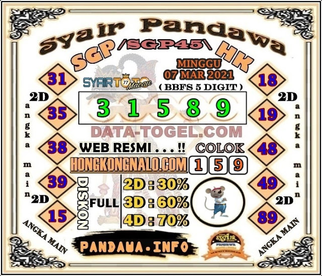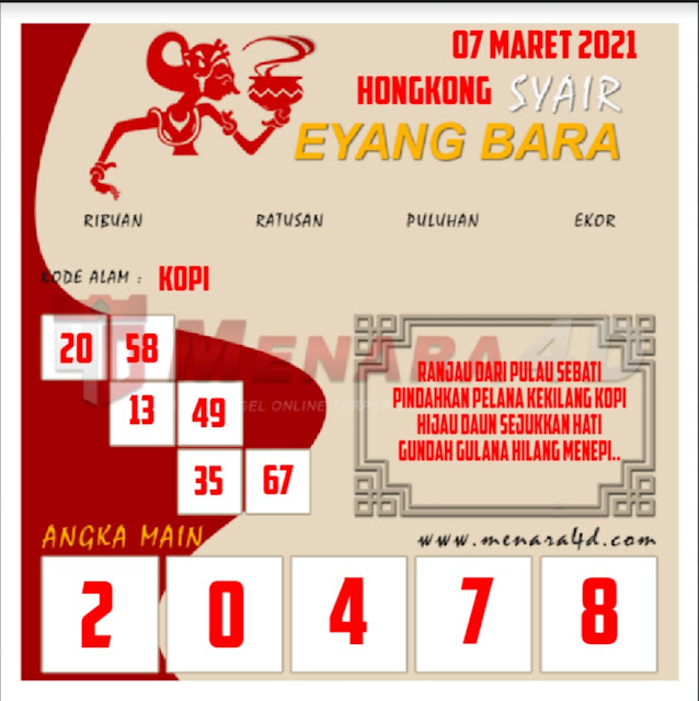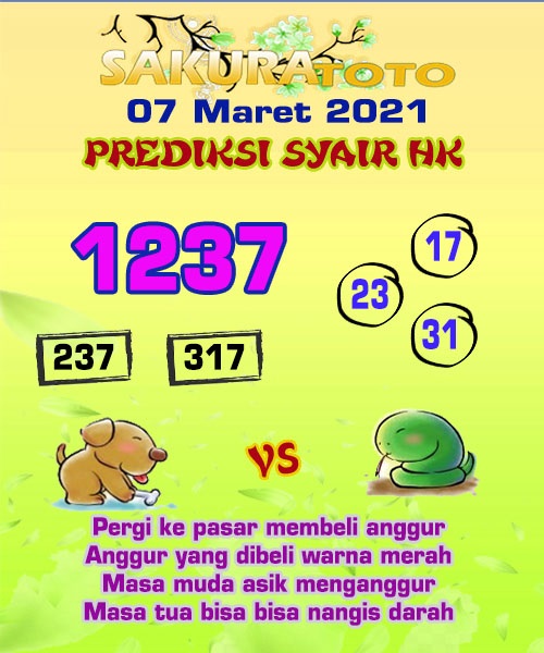 Permainan togel online ini sangatlah membutuhkan kesadaran diri di dalam membaca dan memprediksi suatu angka. Maka dari itu kunjungi selalu kode syair hk hari ini dimana dalam forum syairhk hari ini yang kami terbitkan ini akan jauh lebih memudahkan anda dalam menebak angka keluaran di periode selanjutnya. Kami juga sudah mempersiapkan Prediksi Syair Hongkong Akurat 07 Maret 2021 untuk anda member tercinta kami.