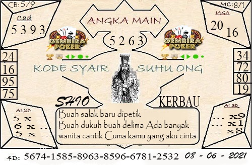 Tetaplah pergunakan perasaan anda sendiri untuk memahami semua makna dari Syair HK 08 Juni 2021. Jangan terlalu terburu – buru ya saat membaca semua makna dari syair hk kami ini. Pahami dan cerna secara pelan dan pilih lah salah satu syair yang paling terfavorit oleh para penikmat pecinta judi togel online. Oh ya tahukan kalian pada dasarnya ada beberapa syair yang paling banyak dicari oleh jutaan para pemain judi togel online seperti syair kampleng, syair pandawa hk, syair mbah semar, syair hk naga mas.