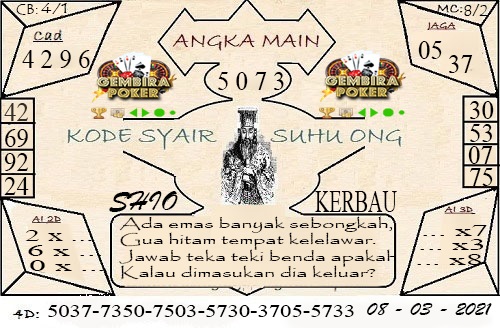 Permainan togel online ini sangatlah membutuhkan kesadaran diri di dalam membaca dan memprediksi suatu angka. Maka dari itu kunjungi selalu kode syair hk hari ini dimana dalam forum syairhk hari ini yang kami terbitkan ini akan jauh lebih memudahkan anda dalam menebak angka keluaran di periode selanjutnya. Kami juga sudah mempersiapkan Prediksi Syair Hongkong Akurat 08 Maret 2021 untuk anda member tercinta kami.