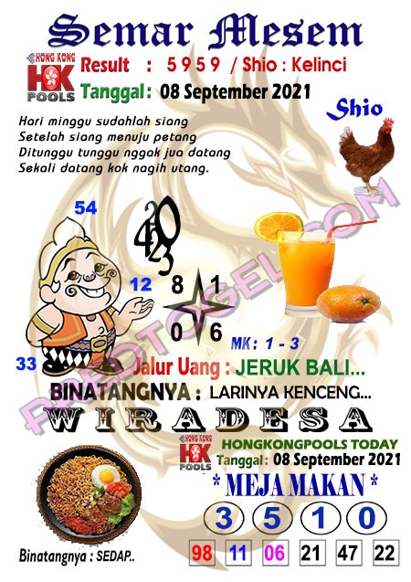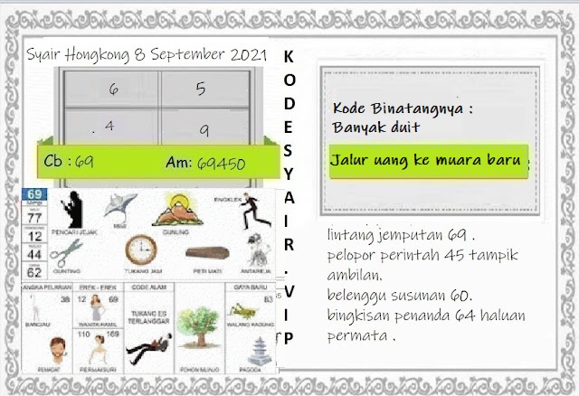 Tetaplah pergunakan perasaan anda sendiri untuk memahami semua makna dari Syair HK 08 September 2021. Jangan terlalu terburu – buru ya saat membaca semua makna dari syair hk kami ini. Pahami dan cerna secara pelan dan pilih lah salah satu syair yang paling terfavorit oleh para penikmat pecinta judi togel online. Oh ya tahukan kalian pada dasarnya ada beberapa syair yang paling banyak dicari oleh jutaan para pemain judi togel online seperti syair kampleng, syair pandawa hk, syair mbah semar, syair hk naga mas.