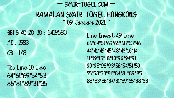 Permainan togel online ini sangatlah membutuhkan kesadaran diri di dalam membaca dan memprediksi suatu angka. Maka dari itu kunjungi selalu kode syair hk hari ini dimana dalam forum syairhk hari ini yang kami terbitkan ini akan jauh lebih memudahkan anda dalam menebak angka keluaran di periode selanjutnya. Kami juga sudah mempersiapkan Prediksi Syair Hongkong Akurat 09 Januari 2021 untuk anda member tercinta kami.