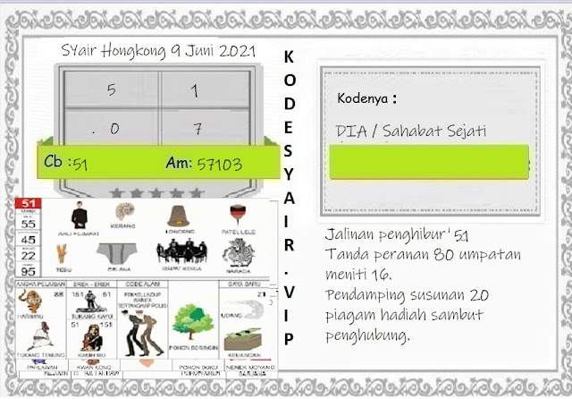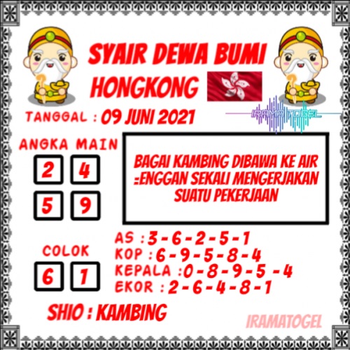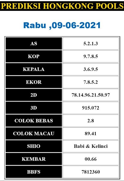 Permainan togel online ini sangatlah membutuhkan kesadaran diri di dalam membaca dan memprediksi suatu angka. Maka dari itu kunjungi selalu kode syair hk hari ini dimana dalam forum syairhk hari ini yang kami terbitkan ini akan jauh lebih memudahkan anda dalam menebak angka keluaran di periode selanjutnya. Kami juga sudah mempersiapkan Prediksi Syair Hongkong Akurat 09 Juni 2021 untuk anda member tercinta kami.
