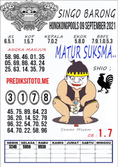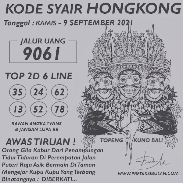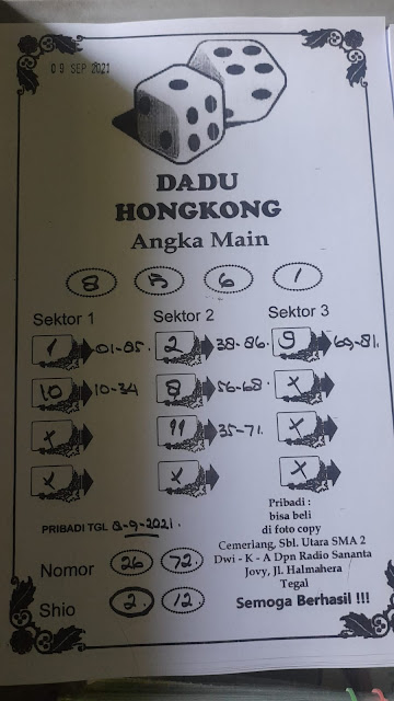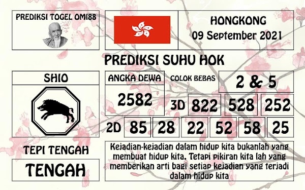 Permainan togel online ini sangatlah membutuhkan kesadaran diri di dalam membaca dan memprediksi suatu angka. Maka dari itu kunjungi selalu kode syair hk hari ini dimana dalam forum syairhk hari ini yang kami terbitkan ini akan jauh lebih memudahkan anda dalam menebak angka keluaran di periode selanjutnya. Kami juga sudah mempersiapkan Prediksi Syair Hongkong Akurat 09 September 2021 untuk anda member tercinta kami.