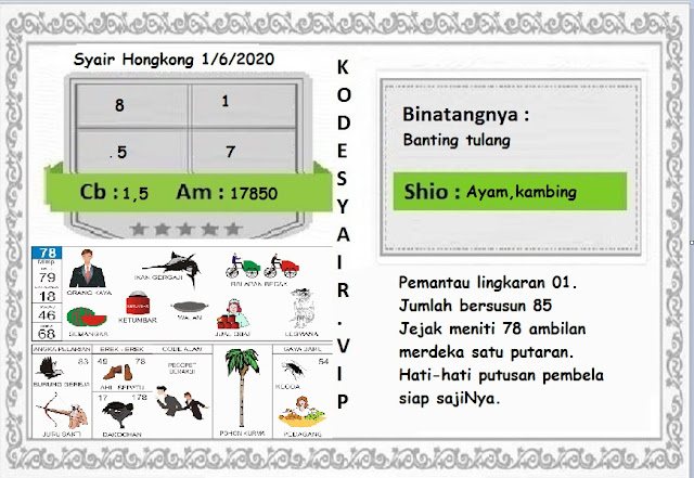 Tetaplah pergunakan perasaan anda sendiri untuk memahami semua makna dari Syair HK 1 juni 2020. Jangan terlalu terburu – buru ya saat membaca semua makna dari syair hk kami ini. Pahami dan cerna secara pelan dan pilih lah salah satu syair yang paling terfavorit oleh para penikmat pecinta judi togel online. Oh ya tahukan kalian pada dasarnya ada beberapa syair yang paling banyak dicari oleh jutaan para pemain judi togel online seperti syair kampleng, syair pandawa hk, syair mbah semar, syair hk naga mas.