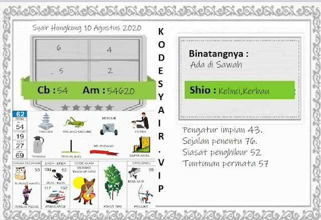 Permainan togel online ini sangatlah membutuhkan kesadaran diri di dalam membaca dan memprediksi suatu angka. Maka dari itu kunjungi selalu kode syair hk hari ini dimana dalam forum syair hk hari ini yang kami terbitkan ini akan jauh lebih memudahkan anda dalam menebak angka keluaran di periode selanjutnya. Kami juga sudah mempersiapkan Prediksi HK Akurat 10 Agustus 2020 untuk anda member tercinta kami.