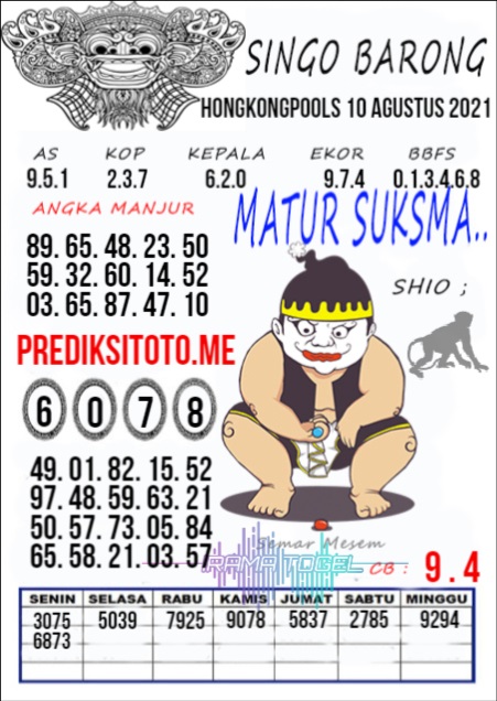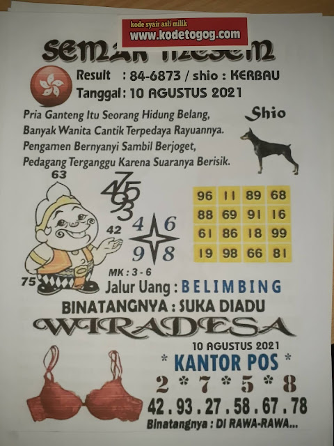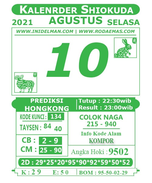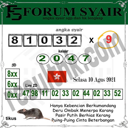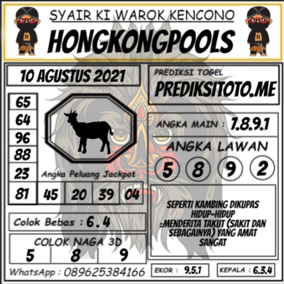 Permainan togel online ini sangatlah membutuhkan kesadaran diri di dalam membaca dan memprediksi suatu angka. Maka dari itu kunjungi selalu kode syair hk hari ini dimana dalam forum syairhk hari ini yang kami terbitkan ini akan jauh lebih memudahkan anda dalam menebak angka keluaran di periode selanjutnya. Kami juga sudah mempersiapkan Prediksi Syair Hongkong Akurat 10 Agustus 2021 untuk anda member tercinta kami.