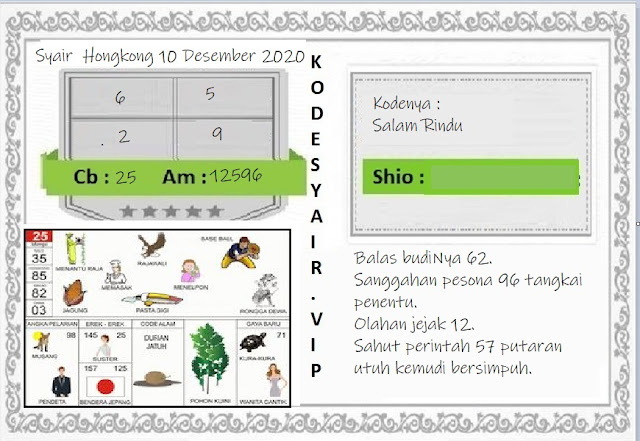 Tetaplah pergunakan perasaan anda sendiri untuk memahami semua makna dari Syair HK 10 Desember 2020. Jangan terlalu terburu – buru ya saat membaca semua makna dari syair hk kami ini. Pahami dan cerna secara pelan dan pilih lah salah satu syair yang paling terfavorit oleh para penikmat pecinta judi togel online. Oh ya tahukan kalian pada dasarnya ada beberapa syair yang paling banyak dicari oleh jutaan para pemain judi togel online seperti syair kampleng, syair pandawa hk, syair mbah semar, syair hk naga mas.