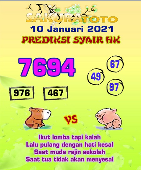 Tetaplah pergunakan perasaan anda sendiri untuk memahami semua makna dari Syair HK 10 Januari 2021. Jangan terlalu terburu – buru ya saat membaca semua makna dari syair hk kami ini. Pahami dan cerna secara pelan dan pilih lah salah satu syair yang paling terfavorit oleh para penikmat pecinta judi togel online. Oh ya tahukan kalian pada dasarnya ada beberapa syair yang paling banyak dicari oleh jutaan para pemain judi togel online seperti syair kampleng, syair pandawa hk, syair mbah semar, syair hk naga mas.