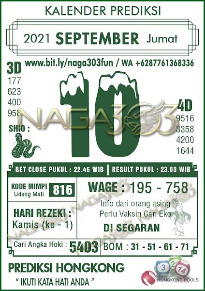 Permainan togel online ini sangatlah membutuhkan kesadaran diri di dalam membaca dan memprediksi suatu angka. Maka dari itu kunjungi selalu kode syair hk hari ini dimana dalam forum syairhk hari ini yang kami terbitkan ini akan jauh lebih memudahkan anda dalam menebak angka keluaran di periode selanjutnya. Kami juga sudah mempersiapkan Prediksi Syair Hongkong Akurat 10 September 2021 untuk anda member tercinta kami.