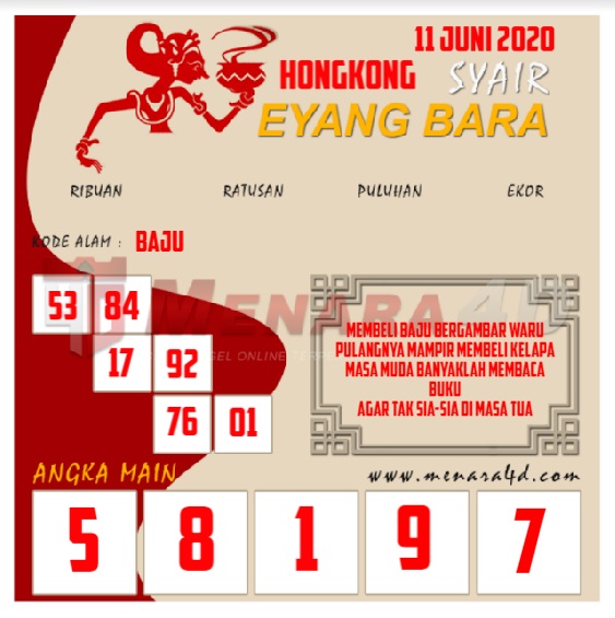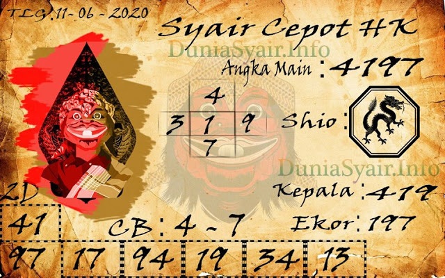 Permainan togel online ini sangatlah membutuhkan kesadaran diri di dalam membaca dan memprediksi suatu angka. Maka dari itu kunjungi selalu kode syair hk hari ini dimana dalam forum syair hk hari ini yang kami terbitkan ini akan jauh lebih memudahkan anda dalam menebak angka keluaran di periode selanjutnya. Kami juga sudah mempersiapkan Prediksi HK Akurat 11 Juni 2020 untuk anda member tercinta kami.