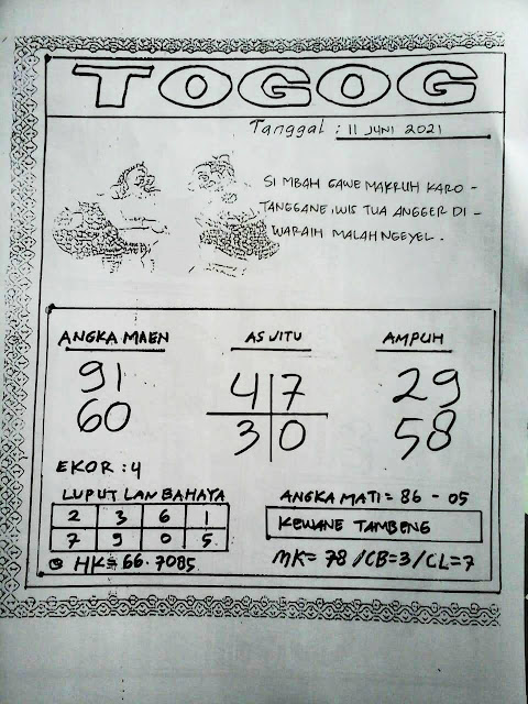 Permainan togel online ini sangatlah membutuhkan kesadaran diri di dalam membaca dan memprediksi suatu angka. Maka dari itu kunjungi selalu kode syair hk hari ini dimana dalam forum syairhk hari ini yang kami terbitkan ini akan jauh lebih memudahkan anda dalam menebak angka keluaran di periode selanjutnya. Kami juga sudah mempersiapkan Prediksi Syair Hongkong Akurat 11 Juni 2021 untuk anda member tercinta kami.