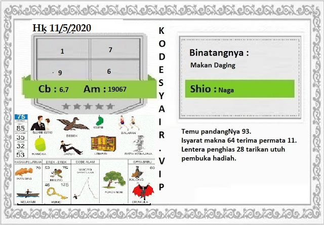 Permainan togel online ini sangatlah membutuhkan kesadaran diri di dalam membaca dan memprediksi suatu angka. Maka dari itu kunjungi selalu kode syair hk hari ini dimana dalam forum syair hk hari ini yang kami terbitkan ini akan jauh lebih memudahkan anda dalam menebak angka keluaran di periode selanjutnya. Kami juga sudah mempersiapkan Prediksi Syair HK Akurat 11 Mei 2020 untuk anda member tercinta kami.
