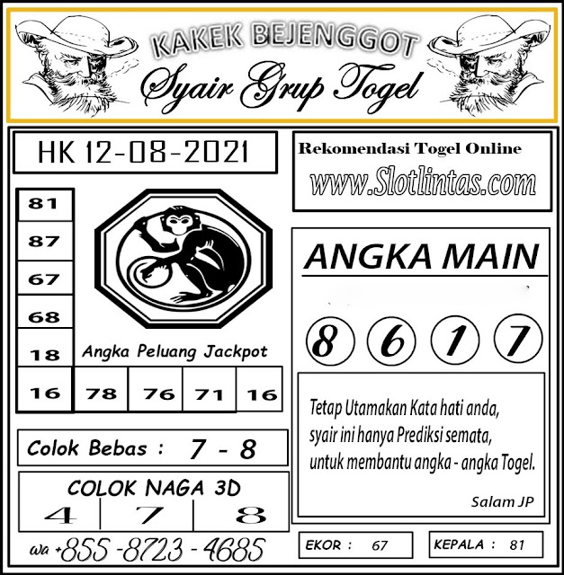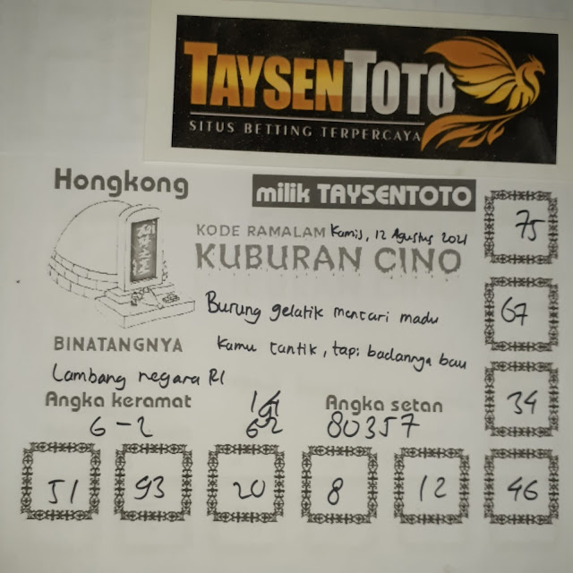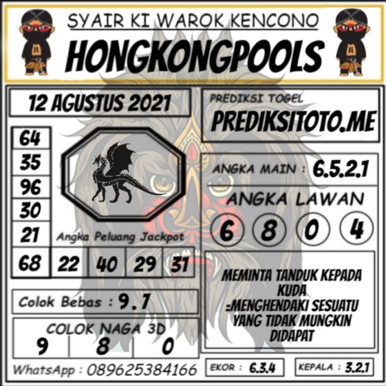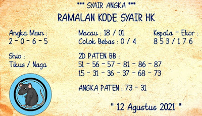 Permainan togel online ini sangatlah membutuhkan kesadaran diri di dalam membaca dan memprediksi suatu angka. Maka dari itu kunjungi selalu kode syair hk hari ini dimana dalam forum syairhk hari ini yang kami terbitkan ini akan jauh lebih memudahkan anda dalam menebak angka keluaran di periode selanjutnya. Kami juga sudah mempersiapkan Prediksi Syair Hongkong Akurat 12 Agustus 2021 untuk anda member tercinta kami.