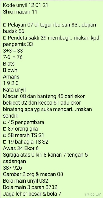 Permainan togel online ini sangatlah membutuhkan kesadaran diri di dalam membaca dan memprediksi suatu angka. Maka dari itu kunjungi selalu kode syair hk hari ini dimana dalam forum syairhk hari ini yang kami terbitkan ini akan jauh lebih memudahkan anda dalam menebak angka keluaran di periode selanjutnya. Kami juga sudah mempersiapkan Prediksi Syair Hongkong Akurat 12 Januari 2021 untuk anda member tercinta kami.
