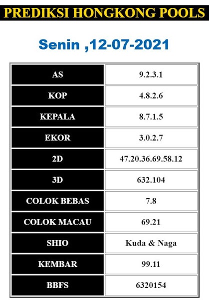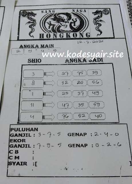 Syair Hk Senin 12 Juli 2021