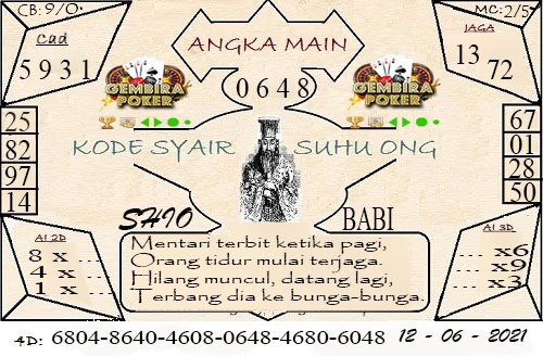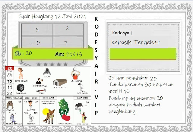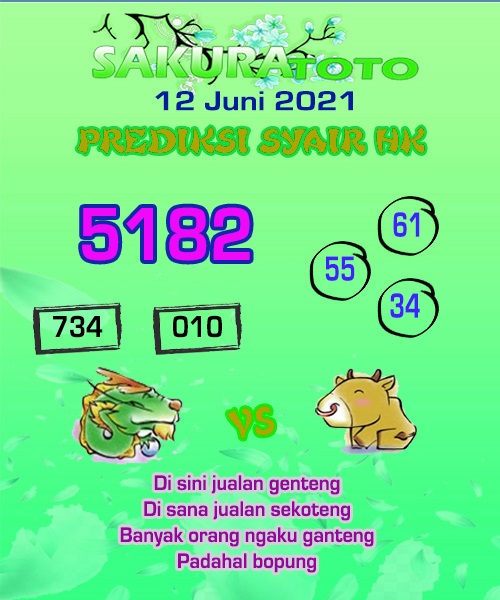 Permainan togel online ini sangatlah membutuhkan kesadaran diri di dalam membaca dan memprediksi suatu angka. Maka dari itu kunjungi selalu kode syair hk hari ini dimana dalam forum syairhk hari ini yang kami terbitkan ini akan jauh lebih memudahkan anda dalam menebak angka keluaran di periode selanjutnya. Kami juga sudah mempersiapkan Prediksi Syair Hongkong Akurat 12 Juni 2021 untuk anda member tercinta kami.