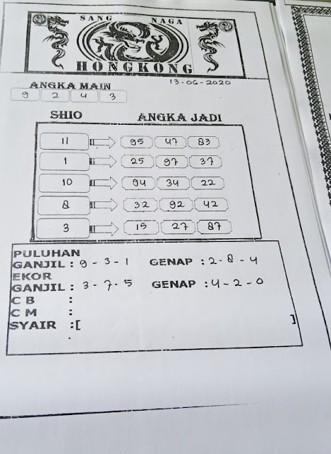 Permainan togel online ini sangatlah membutuhkan kesadaran diri di dalam membaca dan memprediksi suatu angka. Maka dari itu kunjungi selalu kode syair hk hari ini dimana dalam forum syair hk hari ini yang kami terbitkan ini akan jauh lebih memudahkan anda dalam menebak angka keluaran di periode selanjutnya. Kami juga sudah mempersiapkan Prediksi HK Akurat 13 Juni 2020 untuk anda member tercinta kami.