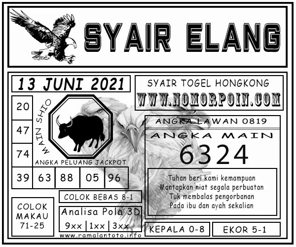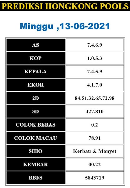 Permainan togel online ini sangatlah membutuhkan kesadaran diri di dalam membaca dan memprediksi suatu angka. Maka dari itu kunjungi selalu kode syair hk hari ini dimana dalam forum syairhk hari ini yang kami terbitkan ini akan jauh lebih memudahkan anda dalam menebak angka keluaran di periode selanjutnya. Kami juga sudah mempersiapkan Prediksi Syair Hongkong Akurat 13 Juni 2021 untuk anda member tercinta kami.