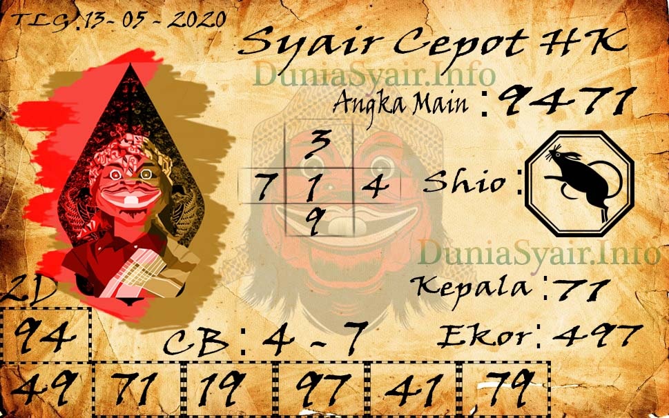 Tetaplah pergunakan perasaan anda sendiri untuk memahami semua makna dari Syair HK 13 Mei 2020. Jangan terlalu terburu – buru ya saat membaca semua makna dari syair hk kami ini. Pahami dan cerna secara pelan dan pilih lah salah satu syair yang paling terfavorit oleh para penikmat pecinta judi togel online. Oh ya tahukan kalian pada dasarnya ada beberapa syair yang paling banyak dicari oleh jutaan para pemain judi togel online seperti syair kampleng, syair pandawa hk, syair mbah semar, syair hk naga mas.