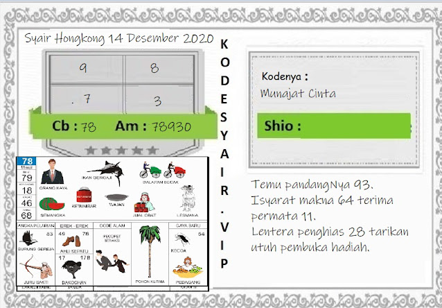 Tetaplah pergunakan perasaan anda sendiri untuk memahami semua makna dari Syair HK 14 Desember 2020. Jangan terlalu terburu – buru ya saat membaca semua makna dari syair hk kami ini. Pahami dan cerna secara pelan dan pilih lah salah satu syair yang paling terfavorit oleh para penikmat pecinta judi togel online. Oh ya tahukan kalian pada dasarnya ada beberapa syair yang paling banyak dicari oleh jutaan para pemain judi togel online seperti syair kampleng, syair pandawa hk, syair mbah semar, syair hk naga mas.