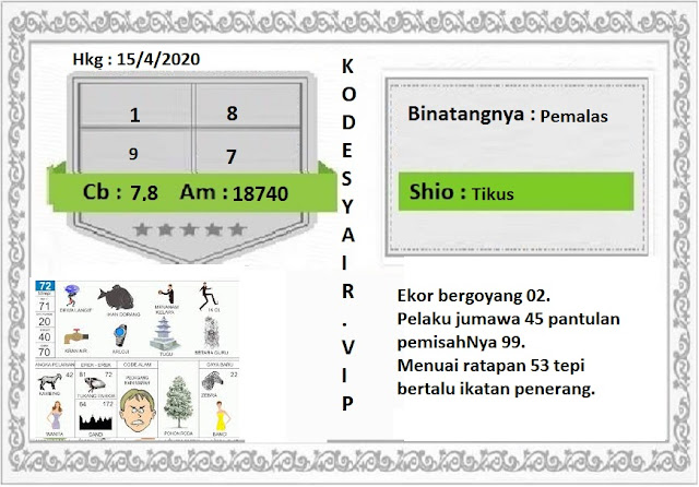 Permainan togel online ini sangatlah membutuhkan kesadaran diri di dalam membaca dan memprediksi suatu angka. Maka dari itu kunjungi selalu kode syair hk hari ini dimana dalam forum syair hk hari ini yang kami terbitkan ini akan jauh lebih memudahkan anda dalam menebak angka keluaran di periode selanjutnya. Kami juga sudah mempersiapkan Prediksi syair HK Akurat 15 April 2020 untuk anda member tercinta kami.
