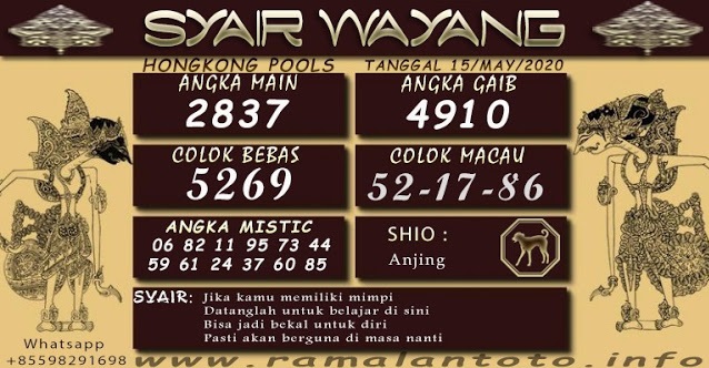 Tetaplah pergunakan perasaan anda sendiri untuk memahami semua makna dari Syair HK 15 Mei 2020. Jangan terlalu terburu – buru ya saat membaca semua makna dari syair hk kami ini. Pahami dan cerna secara pelan dan pilih lah salah satu syair yang paling terfavorit oleh para penikmat pecinta judi togel online. Oh ya tahukan kalian pada dasarnya ada beberapa syair yang paling banyak dicari oleh jutaan para pemain judi togel online seperti syair kampleng, syair pandawa hk, syair mbah semar, syair hk naga mas.