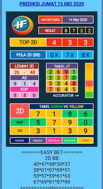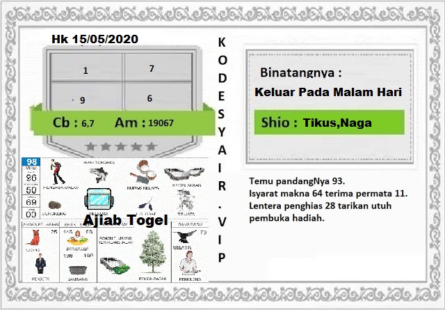 Permainan togel online ini sangatlah membutuhkan kesadaran diri di dalam membaca dan memprediksi suatu angka. Maka dari itu kunjungi selalu kode syair hk hari ini dimana dalam forum syair hk hari ini yang kami terbitkan ini akan jauh lebih memudahkan anda dalam menebak angka keluaran di periode selanjutnya. Kami juga sudah mempersiapkan Prediksi Syair HK Akurat 15 Mei 2020 untuk anda member tercinta kami.