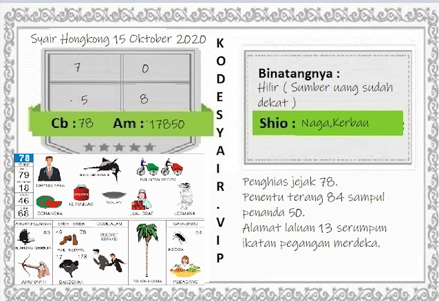 Tetaplah pergunakan perasaan anda sendiri untuk memahami semua makna dari Syair HK 15 October 2020. Jangan terlalu terburu – buru ya saat membaca semua makna dari syair hk kami ini. Pahami dan cerna secara pelan dan pilih lah salah satu syair yang paling terfavorit oleh para penikmat pecinta judi togel online. Oh ya tahukan kalian pada dasarnya ada beberapa syair yang paling banyak dicari oleh jutaan para pemain judi togel online seperti syair kampleng, syair pandawa hk, syair mbah semar, syair hk naga mas.