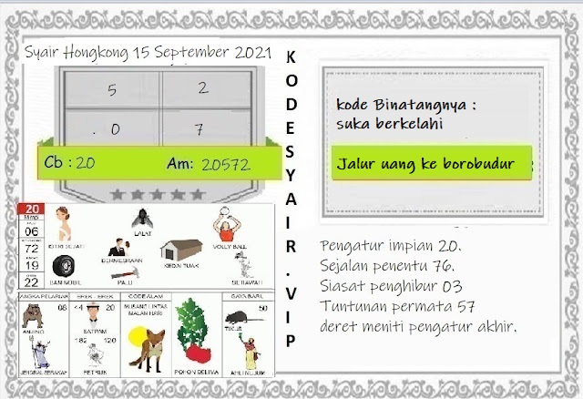 Permainan togel online ini sangatlah membutuhkan kesadaran diri di dalam membaca dan memprediksi suatu angka. Maka dari itu kunjungi selalu kode syair hk hari ini dimana dalam forum syairhk hari ini yang kami terbitkan ini akan jauh lebih memudahkan anda dalam menebak angka keluaran di periode selanjutnya. Kami juga sudah mempersiapkan Prediksi Syair Hongkong Akurat 15 September 2021 untuk anda member tercinta kami.