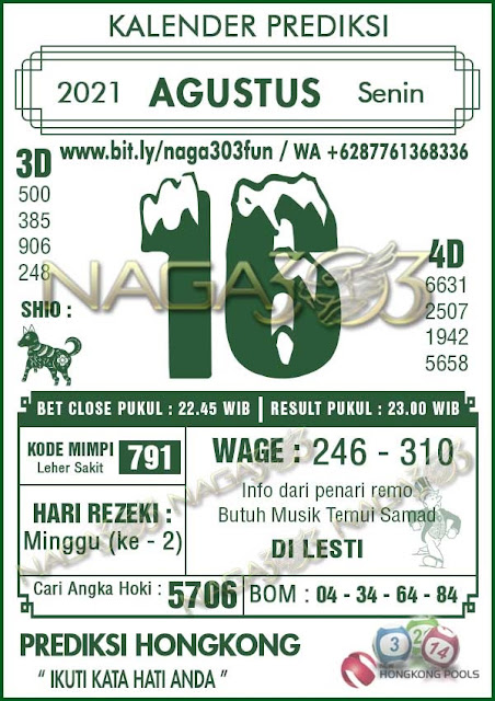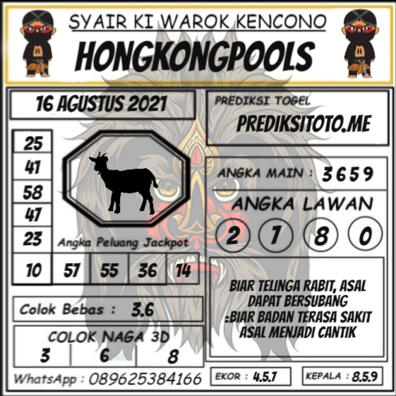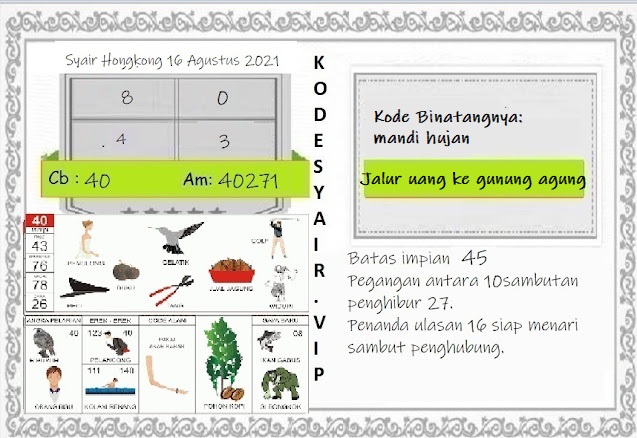 Permainan togel online ini sangatlah membutuhkan kesadaran diri di dalam membaca dan memprediksi suatu angka. Maka dari itu kunjungi selalu kode syair hk hari ini dimana dalam forum syairhk hari ini yang kami terbitkan ini akan jauh lebih memudahkan anda dalam menebak angka keluaran di periode selanjutnya. Kami juga sudah mempersiapkan Prediksi Syair Hongkong Akurat 16 Agustus 2021 untuk anda member tercinta kami.