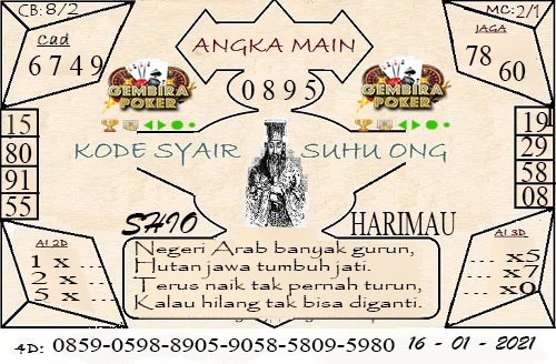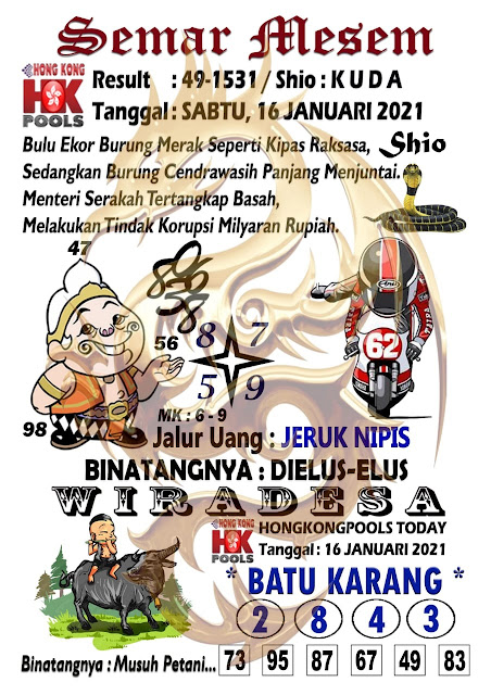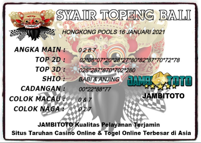 Tetaplah pergunakan perasaan anda sendiri untuk memahami semua makna dari Syair HK 16 Januari 2021. Jangan terlalu terburu – buru ya saat membaca semua makna dari syair hk kami ini. Pahami dan cerna secara pelan dan pilih lah salah satu syair yang paling terfavorit oleh para penikmat pecinta judi togel online. Oh ya tahukan kalian pada dasarnya ada beberapa syair yang paling banyak dicari oleh jutaan para pemain judi togel online seperti syair kampleng, syair pandawa hk, syair mbah semar, syair hk naga mas.